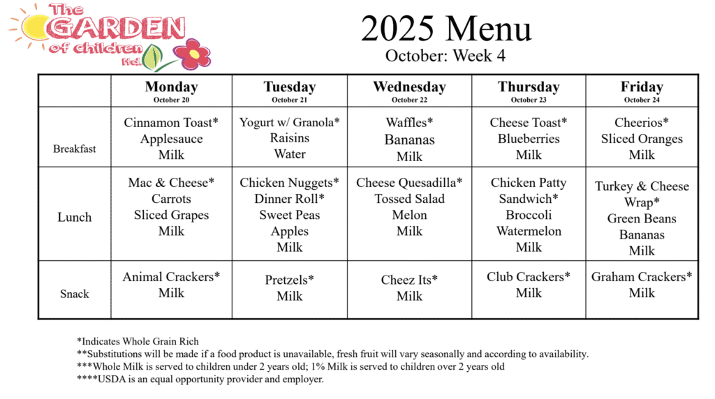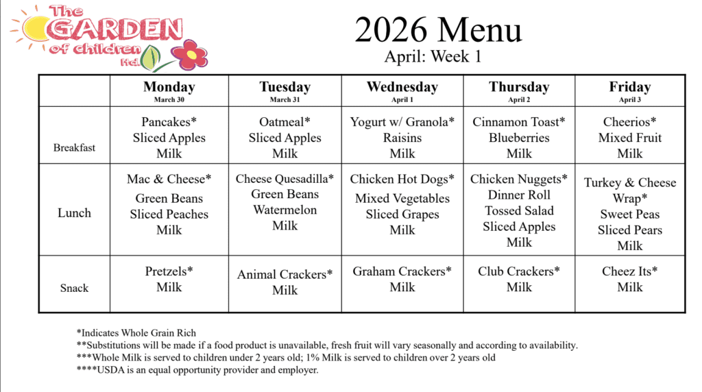 THIS WEEKS MENU AT GARDEN OF CHILDREN, LLC
